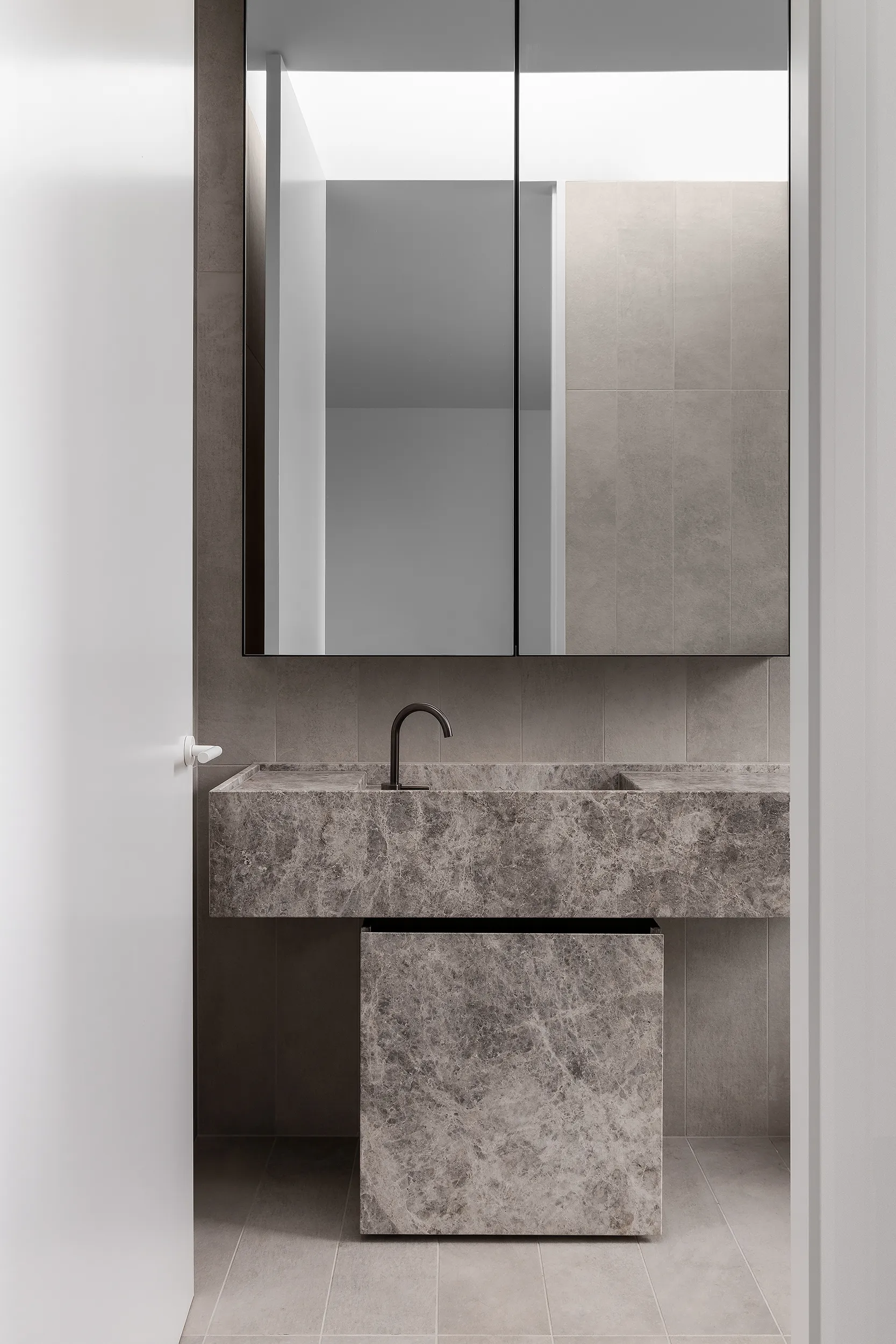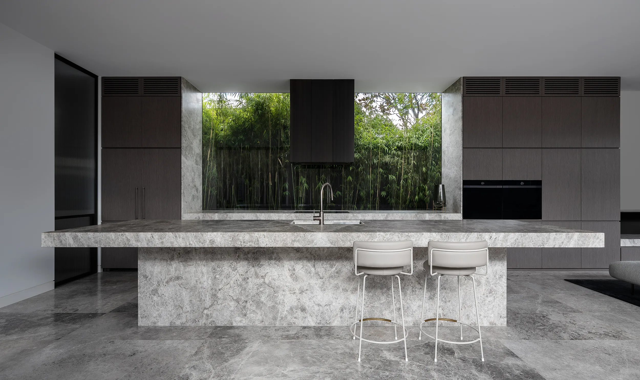 Positioned on a tree-lined street in South Yarra, the House of Bronzed Steel and Stone is a contemporary classic. This home utilizes an interplay of steel and natural limestone and a series of gabled roof forms to create a sophisticated residence with a bold modern aesthetic and timeless appeal.