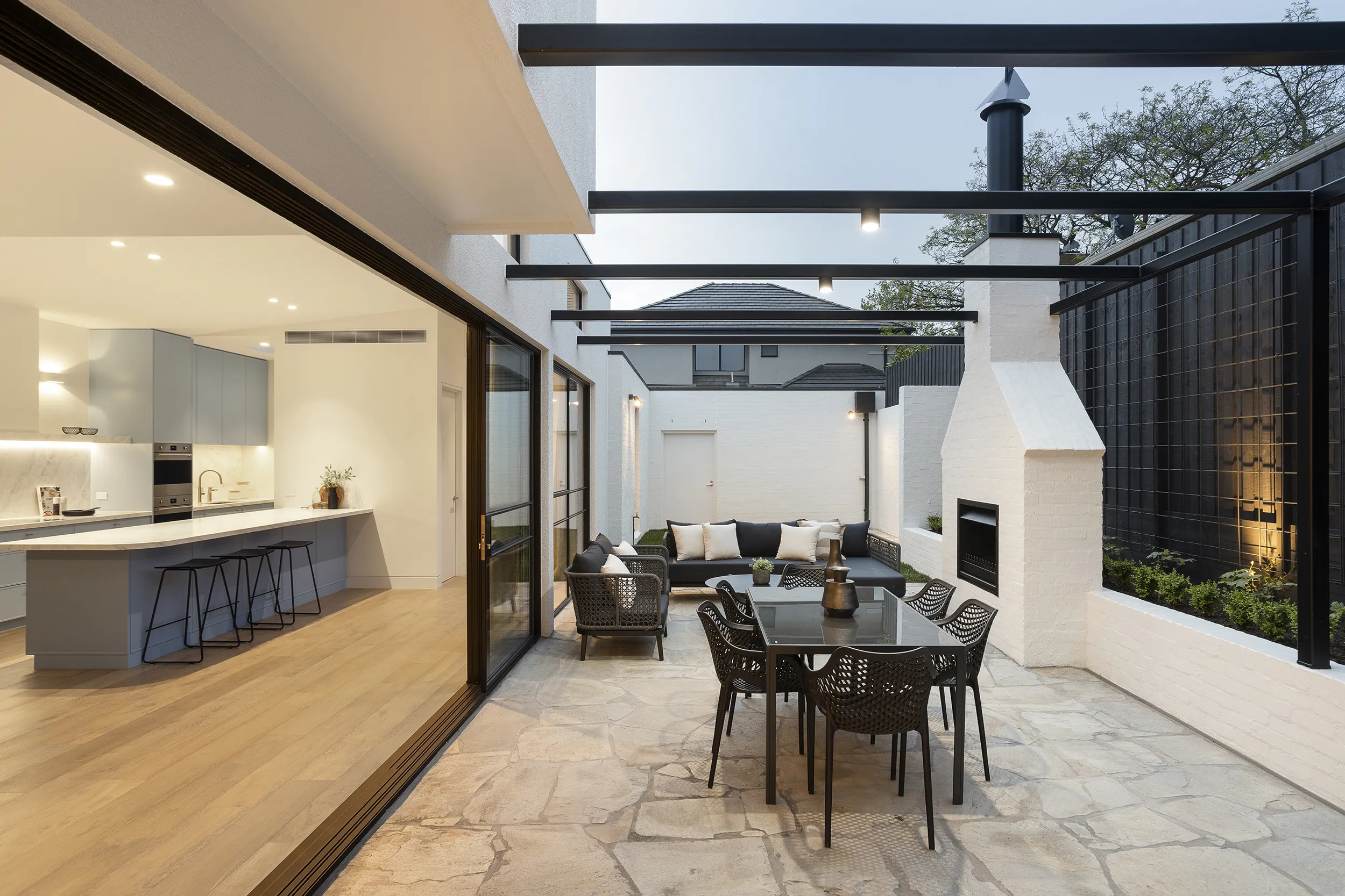 Nestled in the leafy streets of Surrey Hills, this home balances timeless charm with contemporary detail. A bagged brick facade, standing seam metal roof, and steel-framed windows and doors give the exterior a refined, architectural edge.