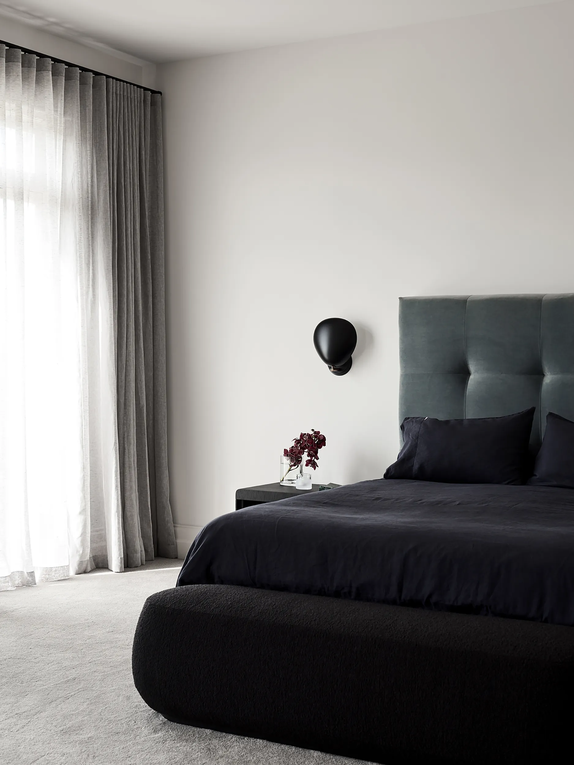 The kitchen plays home to tall overhead cabinetry, integrated appliances and a striking marble benchtop. The result is a truly sophisticated home, layered with tactile materials that exude luxury and sophistication.